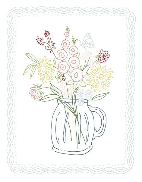 Embroidered Flowers in Glass Mug